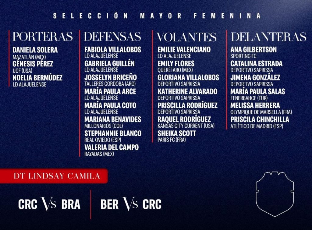San José, Costa Rica. La Selección femenina de fútbol de Costa Rica dio a conocer la lista de 24 jugadoras convocadas para los próximos compromisos internacionales: el amistoso ante Selección femenina de fútbol de Brasil y la segunda jornada de la Clasificatoria Concacaf W 2025-26 frente a Bermudas.
